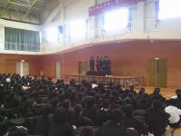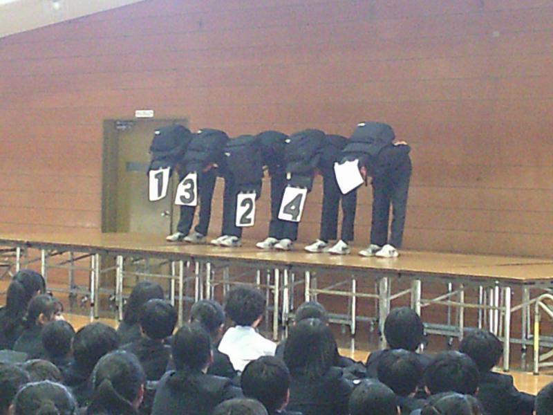 昨日の放課後、体育館に生徒が集い、今年一年間のきょうだい学級を決めました。生徒会が司会をし、流れやルール等を説明し、3年男子学級委員が番号の書かれたカバンを選び、お辞儀をして発表するという流れです。本校は今年、2学年だけが4クラス編成のため、どこかの1,3年のクラスのみ2学年がいない、2クラスのみのきょうだい学級になってしまいます。そのため、くじの要素で決めることになりました。